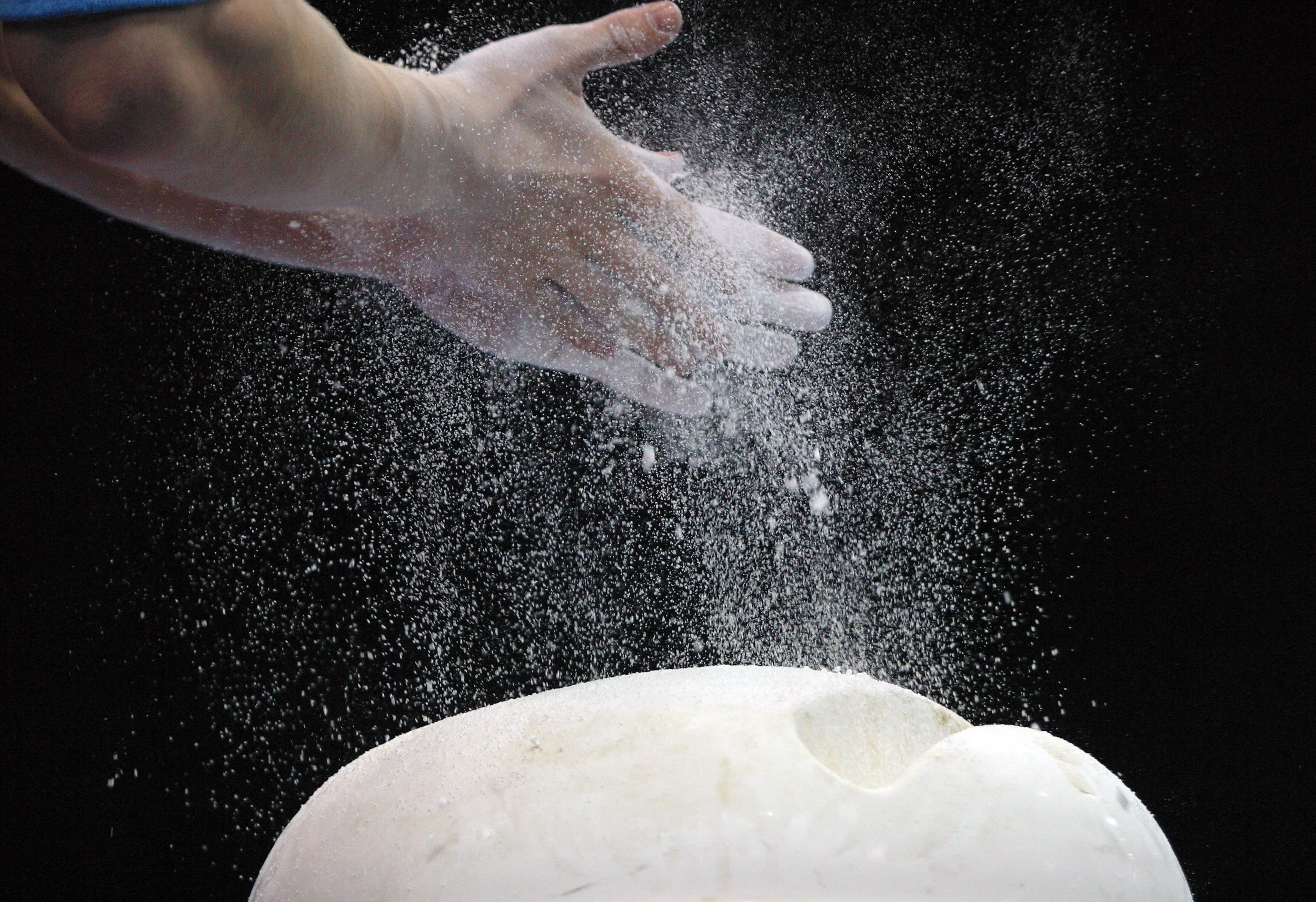 Sugli attrezzi, la resistenza si guadagna con il tempo impiegato ad esercitarsi. Quel tempo impiegato a ripetere più volte e sempre meglio le cose, tuffandosi nella polvere di magnesio e respirandola continuamente fino a sporcarsi gli indumenti e la pelle: quella stessa polvere che entrando in una palestra, se ti fai sorprendere, ti fa tossire e starnutire.